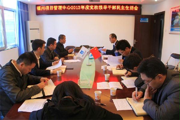 2013年12月1日,中建海峡福州项目管理中心2013年度民主生活会在中心三楼会议室召开,中建海峡助理总经理兼工程总监陈雨仁,助理总经理兼福州项目管理中心经理陈斌出席会议。中心全体领导班子成员参加本次会议,会议由中心书记詹先明主持。
