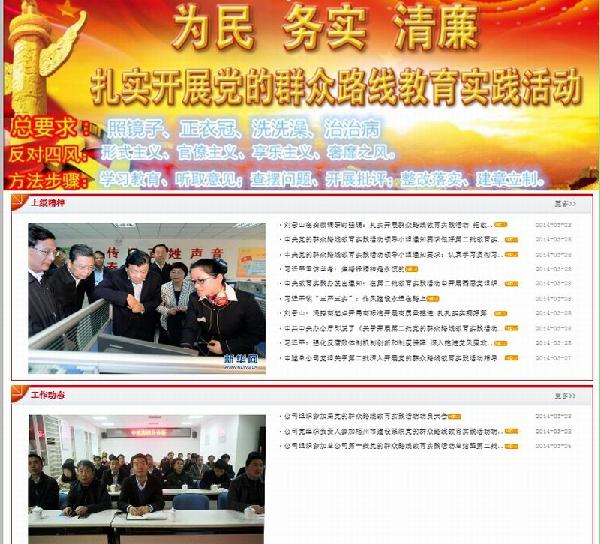为夯实学习教育、听取意见第一环节工作的基础,活动小组办公室在公司外网开通“海峡专题”群众路线教育实践活动专页,并在内网OA系统开设“群众路线”专栏;加盟百度贴吧“中建海峡吧”,在办公平台增设“职工贴吧讨论区”;注册公共微信账户关联手机用户微信圈,启用团委新浪微博凝聚活跃青年学员;收集《焦裕禄》等影片上传百度网盘供偏远项目部党员干部观看;还制作了两个教育实践活动宣贯讲义和一个专题学习幻灯片,并提供多个宣传展板样本和漫画素材让各党(总)支部结合实际宣贯。围绕主题要求,在传承中不断开拓创新,把活动不断引向深入。