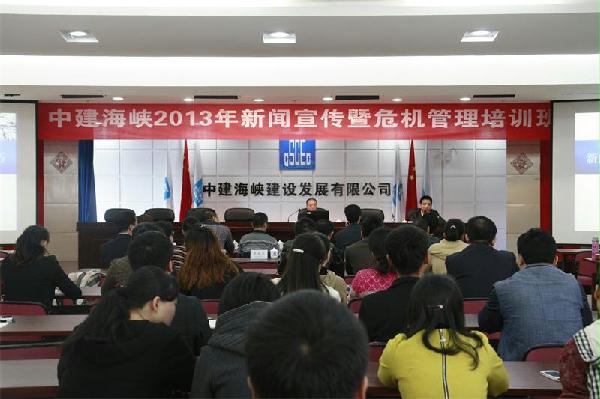 2013年11月22日,中建海峡2013年度新闻宣传暨危机管理培训班在福州举行。来自各基层单位的党(总)支部书记、办公室主任、项目支部书记、通讯员代表等一百余人参加培训。培训由中建海峡党委工作部部长李琦山主持。
