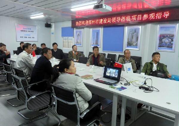12月14日上午郑州市建设安全管理协会会长姜海、副会长郑传昌一行十余人中建海峡商务广场项目参观指导工作,中建海峡安全生产监督管理部总经理陈德斌项目经理蔡青等陪同参观