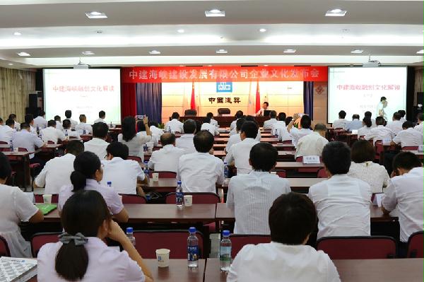 “融心,融智,融天下;创新、创效,创未来!”8月6日,中建海峡在福州总部隆重举办了企业文化发布会,中国企业文化咨询专家杨克明和中国企业文化促进会会长刘骏分别就公司文化的内容诠释及宣贯实施,为公司130余名中层以上干部奉献了一场视听盛宴。“中建信条·融创文化”正式启航。