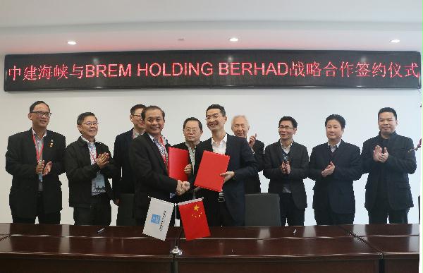 近日,中建海峡与马来西亚柏年控股集团(BREM HOLDING BERHAD)签订合作框架协议。公司党委书记盛祥荣、常务副总经理林向武、副总经理兼工会主席张俊华等出席签约仪式,林向武与柏年控股集团董事长、拿督邱财加代表双方在协议书上签字。