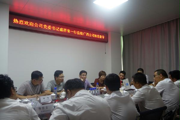 7月19日,公司党委书记盛祥荣携检查组一行赴广西公司检查2017年上半年党群、办公室、人力资源、企业策划与管理等工作。