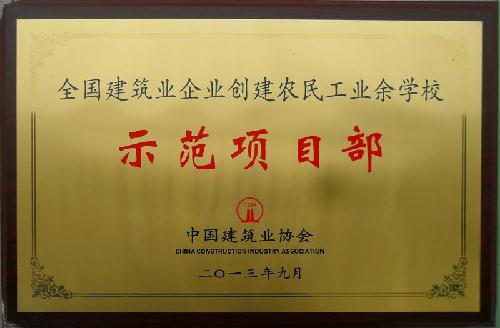 据悉,为深入贯彻党的十八大精神,落实党中央、国务院关于做好农民工工作的要求,推进建筑业企业农民工业余学校制度化、规范化、标准化建设,受住房城乡建设部人事司委托,中国建筑业协会于2013年3-6月组织开展了全国建筑业企业创建农民工业余学校示范项目部活动。经各地区建筑业协会和有关行业建设协会择优推选、网上公示后,报住房城乡建设部审定,全国共有54个项目部被确定为“2013年全国建筑业企业创建农民工业余学校示范项目部。”