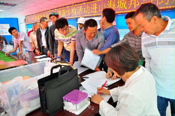 只见会议室挤满了人,大家围在医师身边认真聆听体检的注意事项,几名医生熟练为陆续到来的工人进行抽血化验。专家们还开设了健康知识讲座,使工人们对吸烟的危害冠心病、心血管病等常见疾病的症状、引起原因及危害有了深刻的认识。同时,大家还收到了健康知识宣传卡和保健用品。