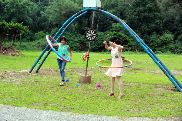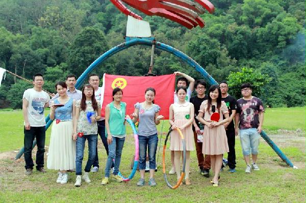 几个道具,两组队伍,一个草坪,一场娱乐性的PK赛就开场了。大家争先恐后冲到目的地并按规则迅速完成顶乒乓球、转呼啦圈、踢毽子、掷飞镖、跳绳等团体项目,小小的游戏让分公司总部的团员青年们的主动性、积极性、协作性发挥淋漓精致。