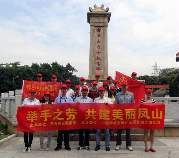 为引导广大青年争良好社会风尚的创造者5月4日,中建海峡安溪片区项目联合团支部联合共青团安溪县委举办了“举手之劳  共建美丽凤山”清洁家园活动