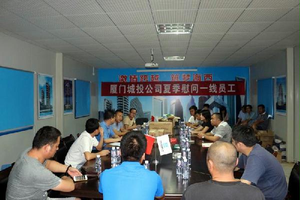 进入七月下旬以来,骄阳似火,持续的高温给奋战在一线的项目员工带来了严峻的考验。7月18日,在中建海峡项目管理部执行总经理郑兴的陪同下,中建海峡副总经理、厦门城投公司董事长孙光华来到漳州·君悦黄金海岸一期、二期和永鸿御龙湾项目部,带着夏季防暑降温慰问品,看望慰问了一线施工人员