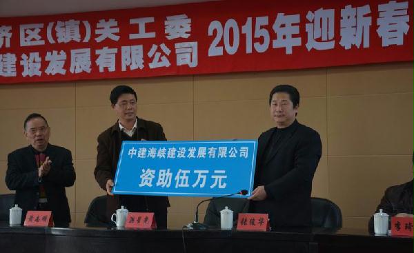 2015年1月29日,在琅岐经济区(镇)关心下一代工作委员会与中建海峡联合举办的2015年迎新春慰问特困青少年发放“爱心款”仪式上,公司副总经理、工会主席张俊华向琅岐经济区100名特困学生、残疾儿童送上了新春“爱心款”5万元,让贫困孩子们在这个严冬感受到了春天般的温暖。