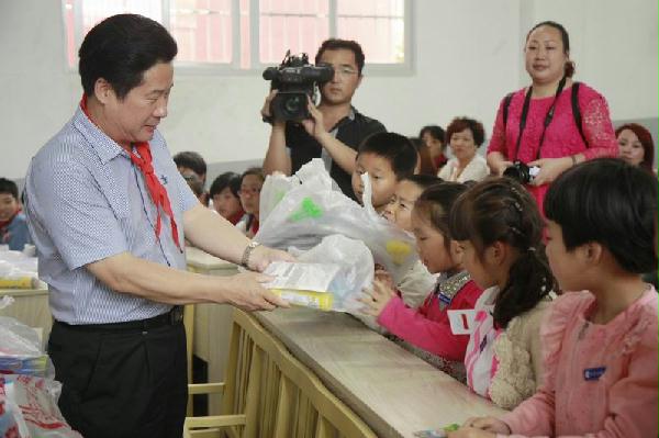 “感谢中建海峡的叔叔阿姨陪我们过‘六一’,还给我们送了那么多礼物,我们一定会好好学习,不辜负叔叔阿姨的希望。”2014年5月29日下午,在福建省宁德市柘荣县城关小学的阶梯教室,中建海峡副总经理、工会主席张俊华,办公室主任蒋俊棋,企业文化部执行总经理兼团委书记李琦山等相关人员和柘荣县城郊乡、岭边亭村领导一道看望慰问了近七十名在校的岭边亭村籍的孩子们,为孩子们带来了节日的祝福和礼物。