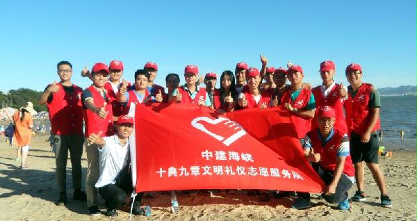 8月1日下午,在建军88周年之际,中建海峡厦门区域“十典九章”文明礼仪志愿服务队来到厦大白城海滩开展“善心善行365”净摊活动。19名志愿者在净摊捡垃圾的过程中,以实际行动向广大市民、游客宣传了“垃圾不落地”等环保理念,倡导文明旅游,很好地践行了《十典九章》,提升了中建企业文化形象。此次活动收获了不少市民游客的点赞。