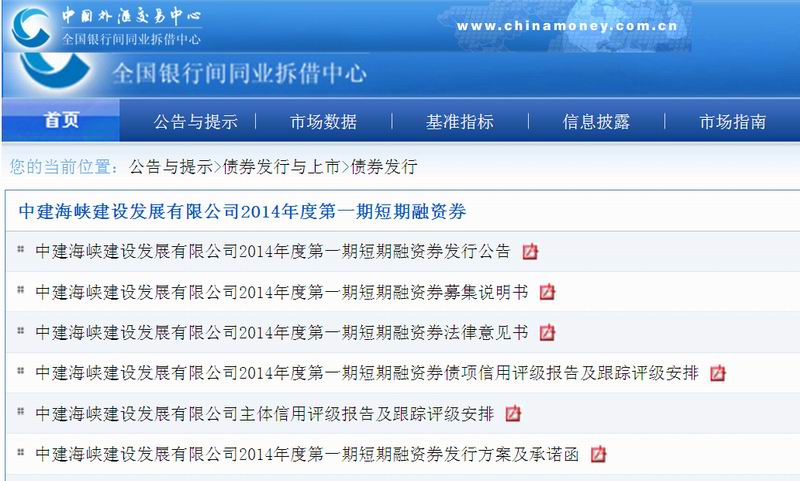 中建海峡2014年首期短期融资券顺利发行