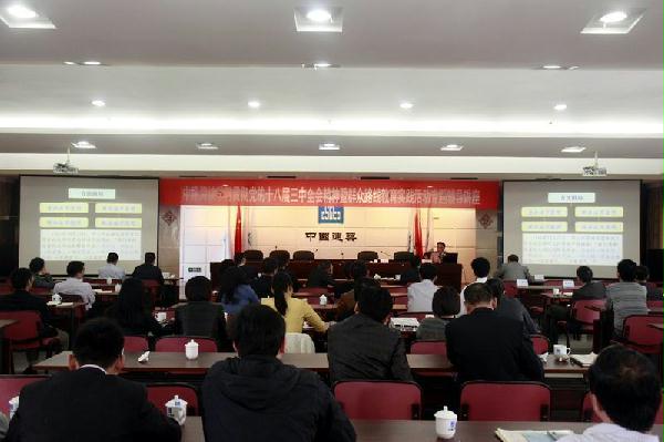 4月11日,中建海峡成功举办学习贯彻党的十八届三中全会精神暨群众路线教育实践活动主题辅导讲座。福建省委党校教育研究会副会长杨小冬以“践行群众路线,做好群众工作”为主题进行了专题讲座。中建海峡领导班子成员、总部副职以上人员、公司属各单位正职领导及党员代表共90余人参加了本次讲座
