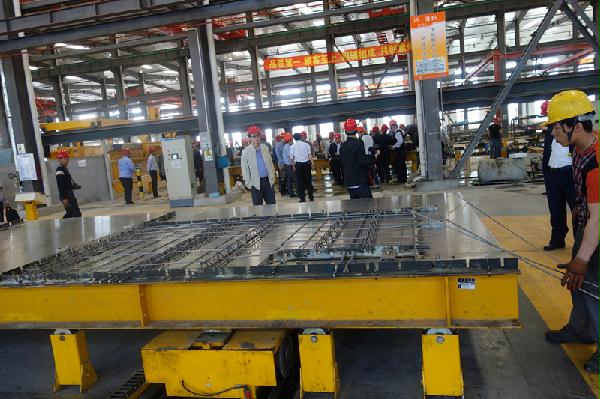 筹备组一行首先来到亚泰集团(沈阳)建材基地的PC构件厂进行参观考察,筹备组各成员根据考察分工安排,结合中建海峡PC构件厂建厂的实际需要,向亚泰PC构件厂的工程师详细了解了厂区总体规划、设计产能、人员配比、生产设备选型以及安全生产方面的情况。随后,筹备组来到使用建筑工业化技术进行施工的沈阳惠生新城保障房项目进行实地考察,观看了PC构件的安装、支撑、节点及接缝处的灌浆套筒连接等核心工艺的施工过程,并向项目经理详细了解了PC构件施工过程中的人工、料具、工期的安排以及施工要点控制。