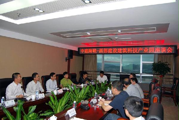 座谈会上,盛祥荣首先对吴志旗一行的到访表示热烈欢迎王耀中建海峡绿色建筑产业园的相关情况作了简要介绍,双方就产业园的筹建进展、公司治理结构、人员配备、下一步工作安排等共同关心的问题深入交换了意见。双方表示,将强强联合开展深入合作,发挥各自优势,创新合作模式,实现合作共赢。