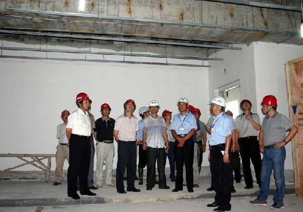 孔文亚一行在观看完动车站动漫视频和沙盘模型后,在施工现场听取了詹先明关于工程概况、生产进度、安全质量控制措施等工作汇报,了解了具体的施工组织安排,对HFMG-ZF2标段的施工进度、质量文明施工四电机房的顺利交付使用给予了高度肯定。随后,检查组对项目部内业资料进行检查认为项目部的各项管理制度和办法比较健全,内业资料台账齐全,管理规范,标准化程度高,满足中国铁路总公司的要求。