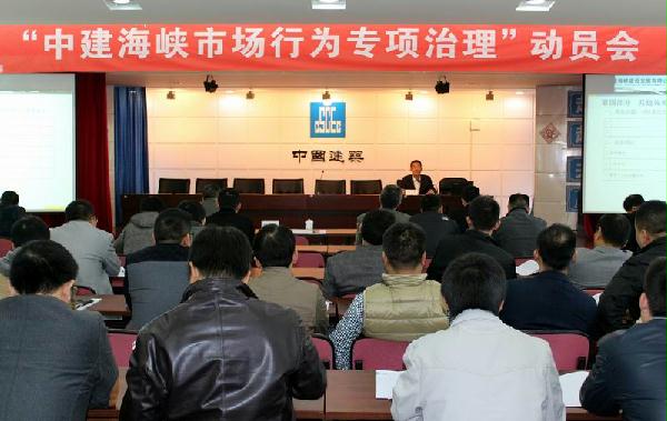 为进一步落实住建部、福建省建设厅关于规范建筑市场行为的文件精神,12月7日上午,“中建海峡市场行为专项治理”动员会在公司思儿亭总部九楼大会议室顺利召开,会议由公司助理总经理兼项目管理部总经理陈斌主持。