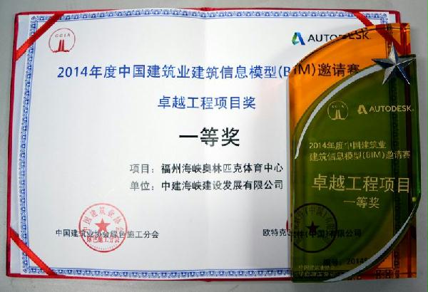 12月12,中国建筑业协会绿色施工分会、欧特克软件(中国)有限公司在天津共同举办“2014年度中国建筑业建筑信息模型(BIM)邀请赛”颁奖典礼。中建海峡福州奥体中心项目荣获本次邀请赛卓越工程项目奖一等奖。