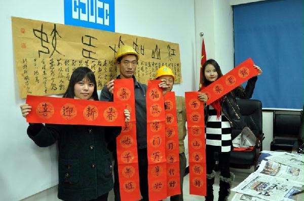 写满祝福语的一幅幅春联送到了项目农民工的手中,也营造了项目部浓厚的传统文化氛围。