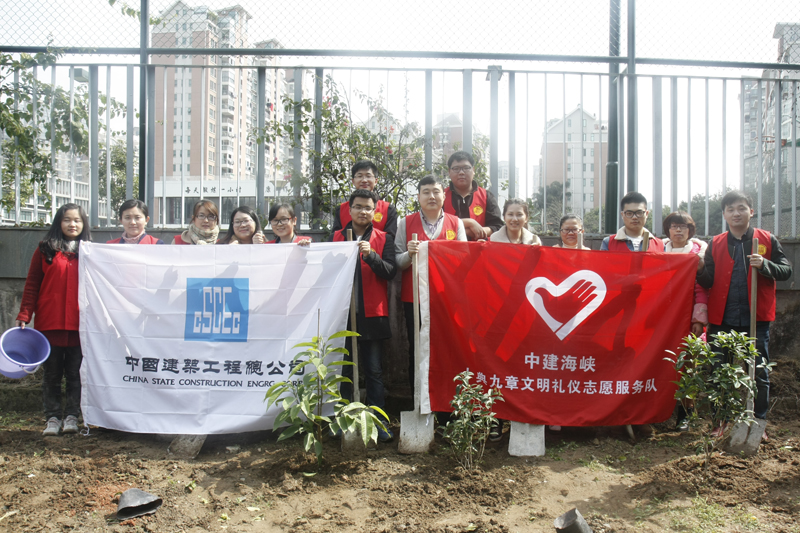 “十典九章”花廊扮靓尤溪洲桥头——中建海峡团委开展“3·12”植树节主题活动