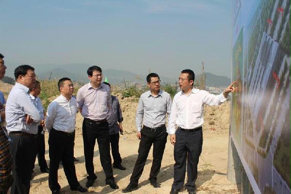 闽清县县长肖华,中建海峡党委书记盛祥荣、副总经理王耀首席信息官兼产业园筹建处负责人蒋俊棋中国建筑发展有限公司建筑工业化研究发展中心主任张明祥等参加调研