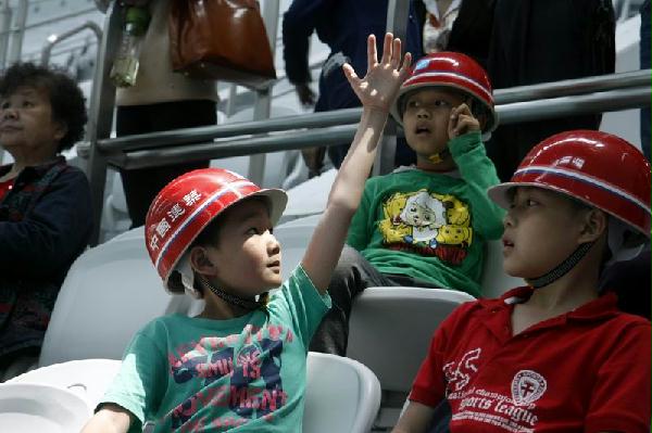 怀着紧张而兴奋的心情,小记者们第一次戴上安全帽,跟着项目讲解员,走进“一场三馆”,一起探究“海螺水滴”的奥秘。体育馆内能升降的巨大“斗屏”、网球馆的活动座椅、游泳馆的水下救生系统……这一切新鲜有趣的建筑设计知识让小记者们激动不已同时,项目部还准备了30道有奖抢答题,小记者们积极抢答,现场气氛十分活跃。活动最终,每个小记者还收获了一个带有奥体图案的骨瓷马克杯,一起在项目食堂品尝了一次大锅饭的味道