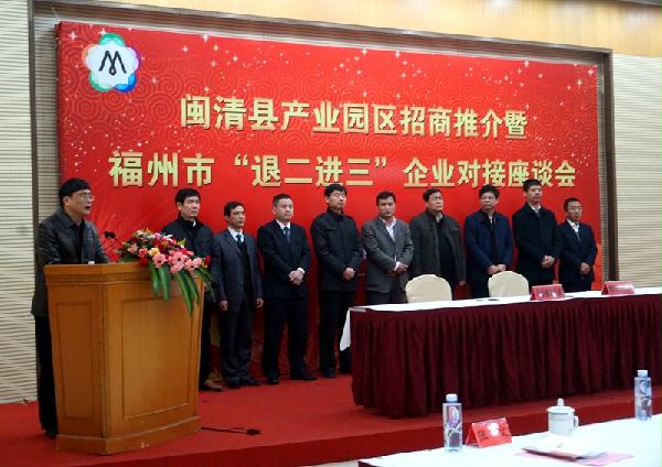 2月24日,中建海峡副总经理王耀、企业技术中心副总经理兼产业发展中心总经理刘文雄受闽清县招商办邀请参加闽清县产业园区招商推介暨福州市“退二进三”企业对接座谈会。