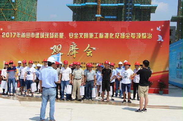 8月15日,由莆田市住房和城厢建设局主办,城厢区住房和城厢建设局、莆田市建筑协会协办,公司承办的为期2天的2017年莆田市质量安全施工现场观摩会在城厢区莆田西霞林地块A建设工程项目成功举办。莆田市质量安全监督站站长许玉瑞、公司安全生产监督管理部副总经理陈才权、厦门公司总工程师杨挺杰及莆田市各区行政主管部门、建筑单位代表等近500人参加现场观摩。