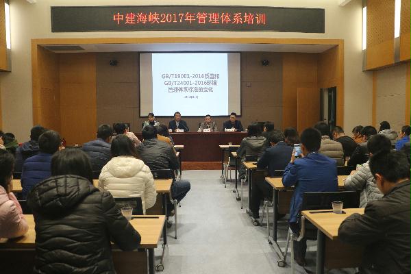 12月15日,中建海峡在马尾总部大楼三楼第二会议室开展管理体系培训,公司副总经理兼总工程师吴平春出席培训并作开班致辞,总部各部门和公司属各单位负责管理体系的领导及业务骨干共80余人参加了培训。